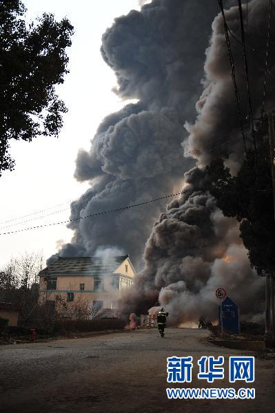 2月23日,消防员在扑救大火。当日14时10分,无锡市鸿山街道后宅全立化工厂发生爆炸后起火燃烧。截至发稿时,火势已经被有效控制,据现场消息,未发现人员伤亡。新华社发
